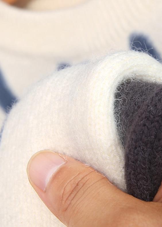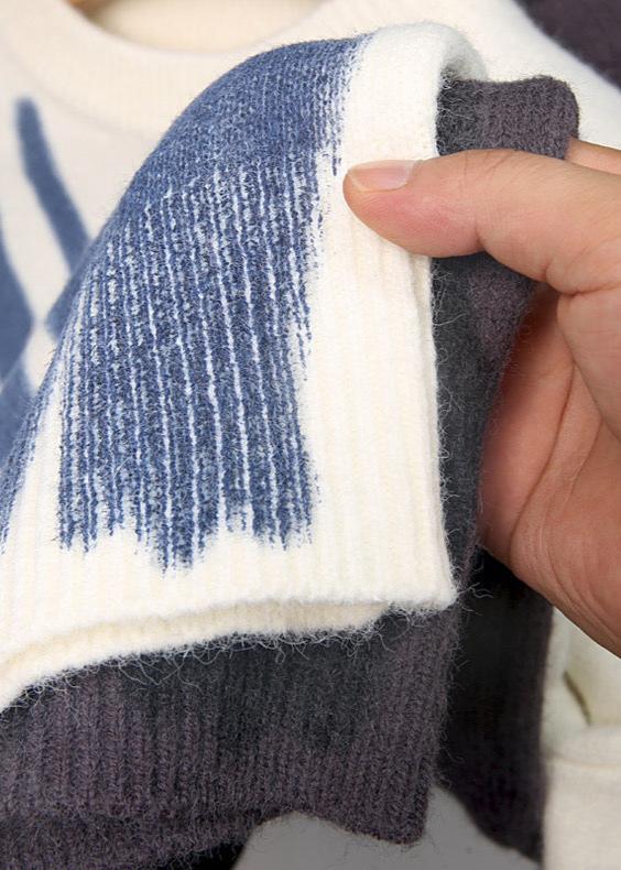 Ce pull en peluche douce présente un motif abstrait audacieux et une texture subtile, avec une coupe légèrement oversize qui crée une couche épaisse mais légère pour un confort douillet.